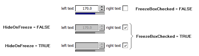 The property HideInputOnFreeze controls whether the input field switches into readonly mode or becomes completely empty when the property FreezeBoxChecked is set to TRUE.