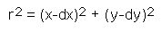 The values of x and y are given by the data samples, the parameters dx, dy, and r are estimated by CalcCircleFit using a least squares approximation. The data points [x,y] have to be entered using the routine EnterStatValue. A minimum number of 3 values is required in order to apply CalcCircleFit. Do not forget to reset the statistics calculation before entering any new data sets (use Init)