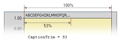 The property CaptionTrim controls how much of the caption area of the chart can be used to display the caption. The value of CaptionTrim can assume values between 0 and 100 and specifies the maximum length of the caption in percent of the chart width. Setting CaptionTrim to zero turns off the restriction of the length of the caption. If the length of the caption exceeds the allowed value the caption is abbreviated.
