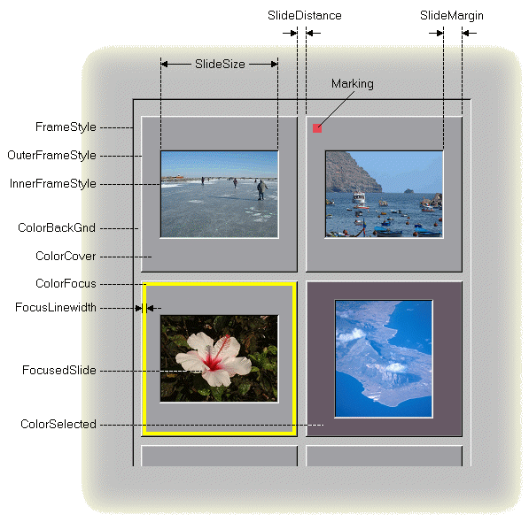 The property ColorCover determines the color of the slide cover.