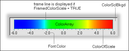 The property FramedColorScale controls whether a line is drawn around the color array. The color of the frame is controlled by the property ColorOfScale.