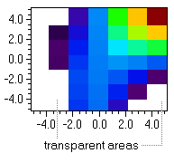 Colored pixel plot; areas having values outside the range of the color scale are transparent. This mode is basically thought to support pixel images on top of a general background (which can be a photo, for example). The colors are taken from the property IsoColors. The color scale is determines by the properties IsoLow and IsoHigh.